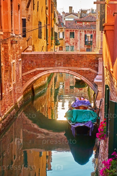 Канал с небольшим мостом в Венеции