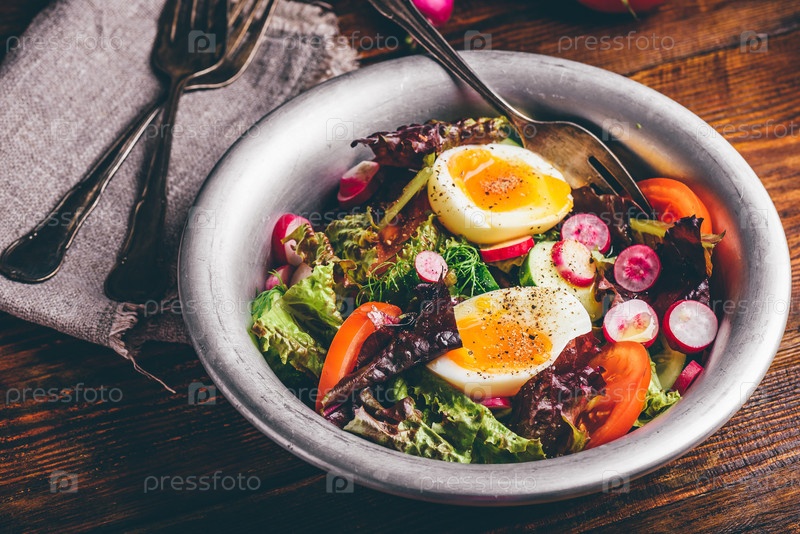 Свежий весенний салат с домашними овощами и вареными яйцами