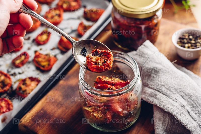 Консервирование свежезапеченных помидоров с тимьяном и оливковым маслом в стеклянной банке