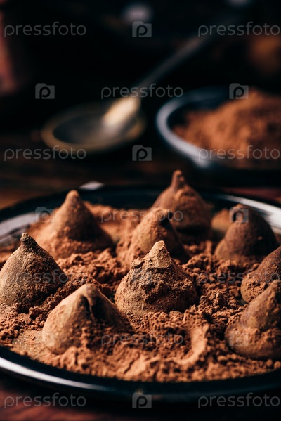 Домашние шоколадные трюфели, покрытые какао-порошком