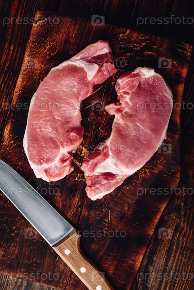 Два стейка из свиной корейки с ножом