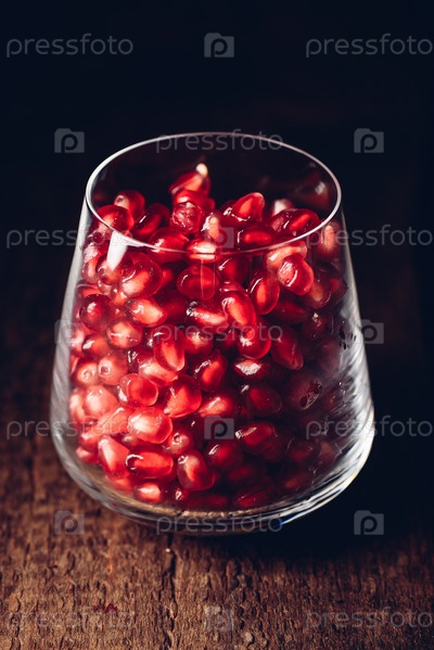 Стакан, полный красных зерен граната