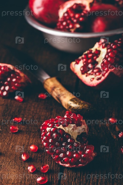 Плоды граната с ножом