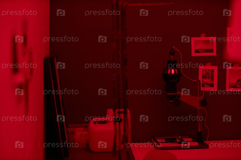 Темная комната с красным освещением для фотографирования