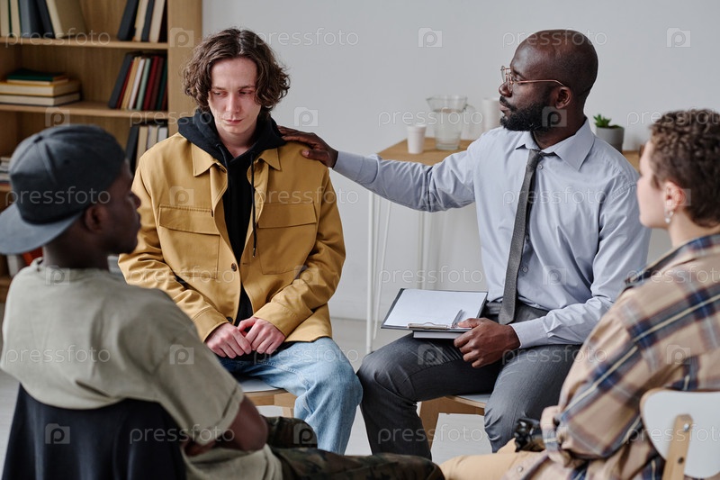 Мужчина рассказывает о своих проблемах на уроке психологии