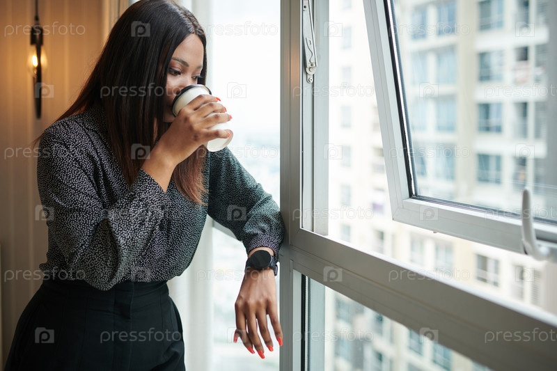Женщина-предприниматель, глядящая в окно