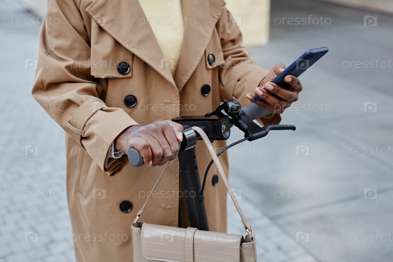 Молодая женщина использует мотороллер в городе