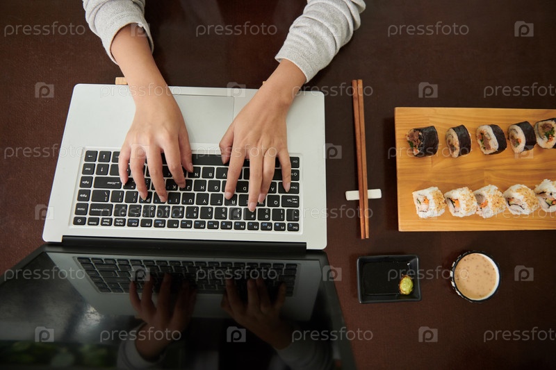 Деловая женщина ест суши