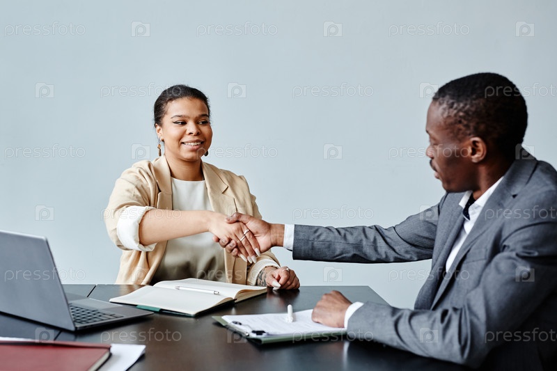 Афроамериканская бизнесвумен приветствует коллегу на встрече