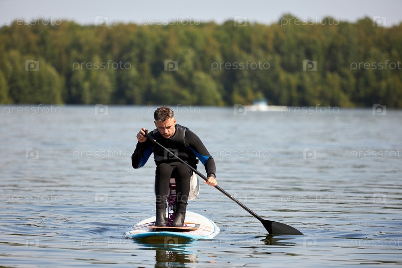 Человек с инвалидностью падлборд на озере водные виды спорта на открытом воздухе в природе
