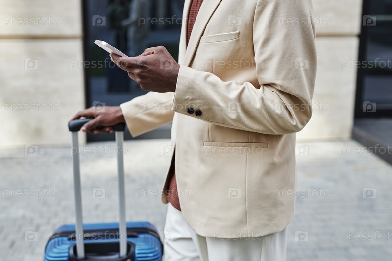 Обрезанный снимок молодого афроамериканского бизнесмена, использующего смартфон