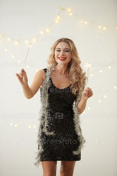Улыбающаяся женщина с бенгальскими огнями