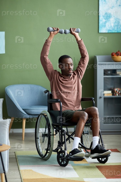 Мужчина с инвалидностью занимается физическими упражнениями дома