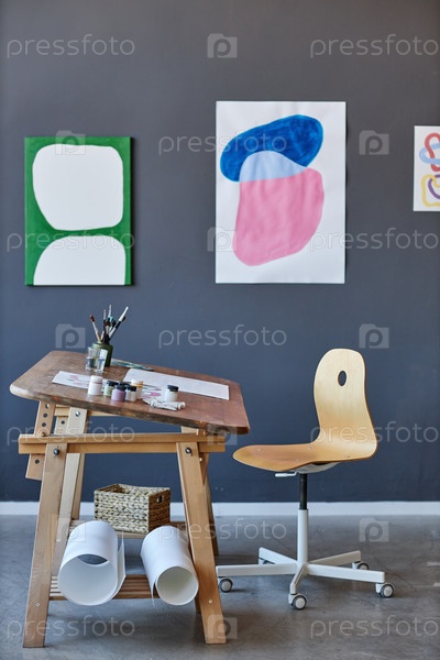Боковой вид рабочего места современного художника или креативного дизайнера интерьера