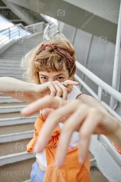 Модный портрет танцующей молодой женщины