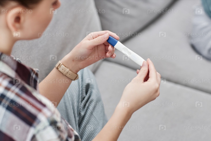 Ближайшее изображение неузнаваемой молодой женщины, держащей пустой тест на беременность