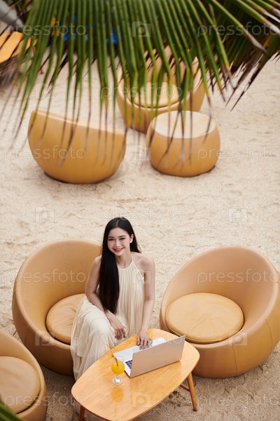 Деловая женщина, проводящая день на песчаном пляже