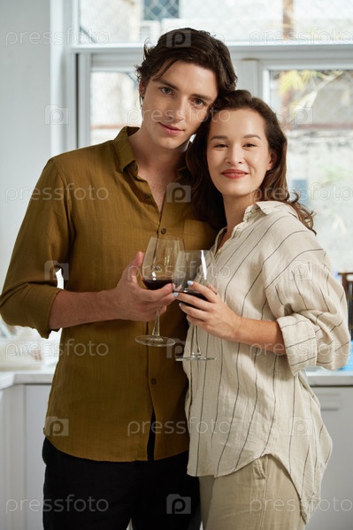 Влюбленная пара пьет вино