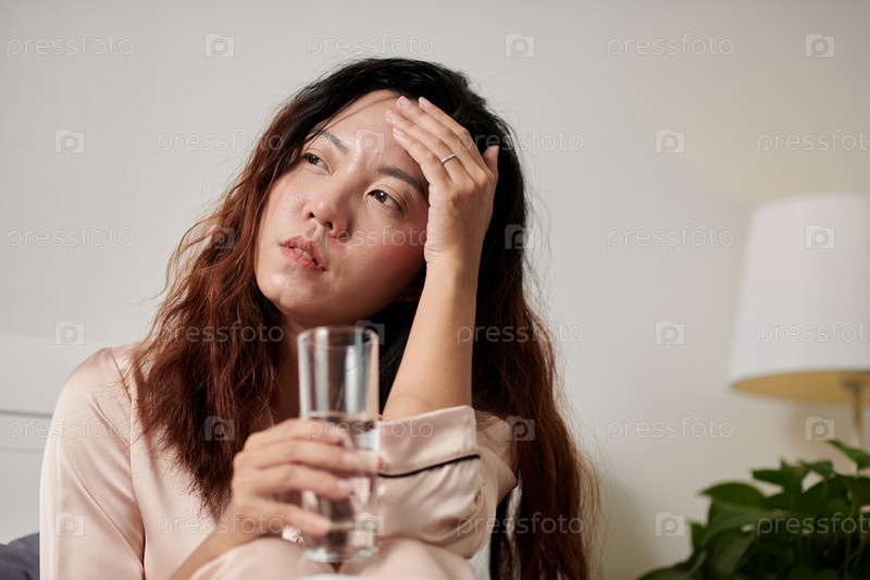 Больная женщина страдает от головной боли