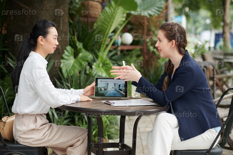 Деловые женщины, встречающиеся с агентом по недвижимости