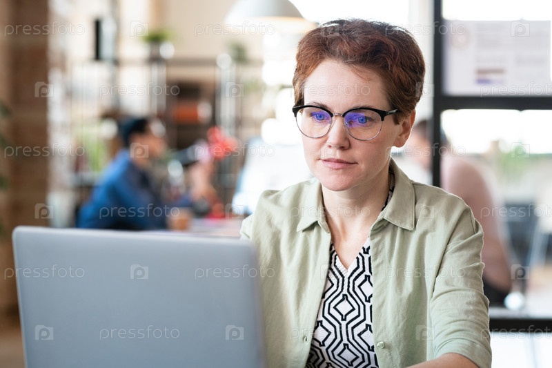 Деловая женщина, работающая на ноутбуке в офисе
