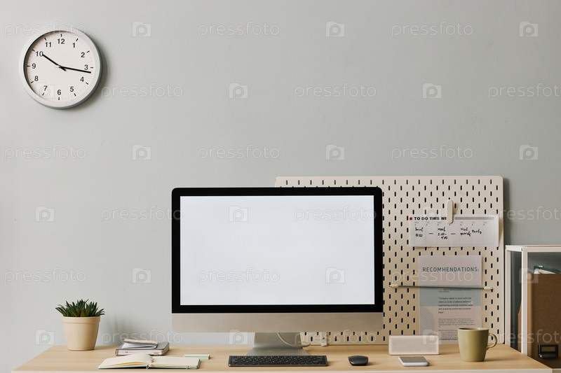 Компьютер с пустым белым экраном на столе
