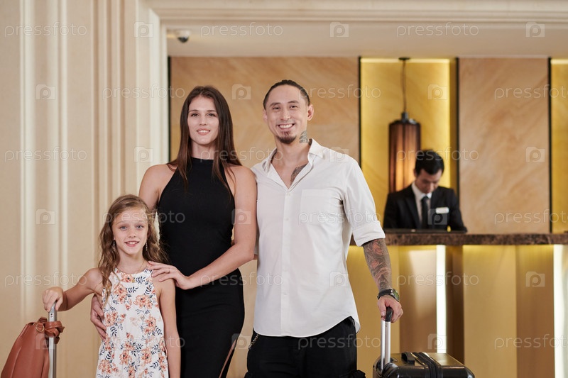 Семья, стоящая в гостиничном зале
