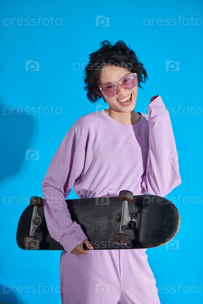 Подростковая девушка со скейтбором