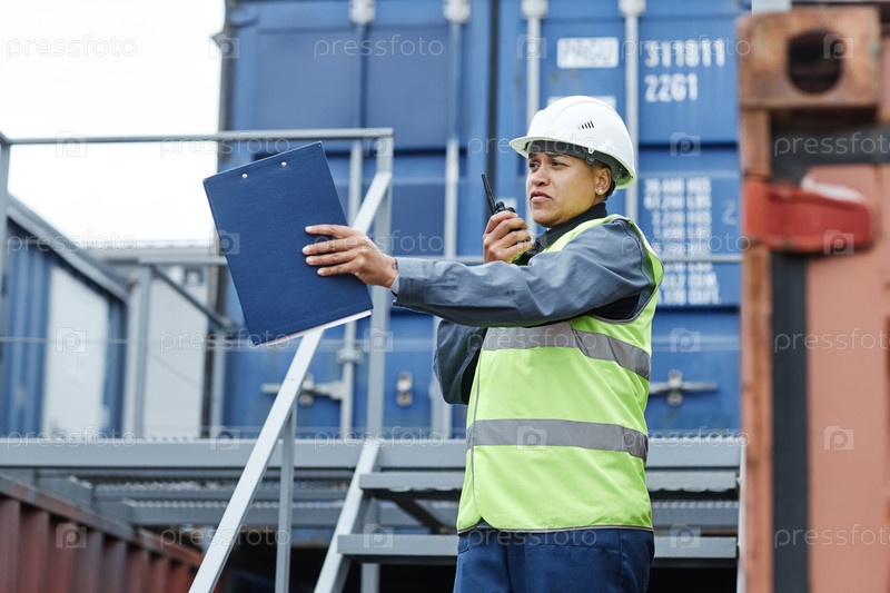 Женщина-предводитель, одетая в жесткую шляпу и говорящая на радио