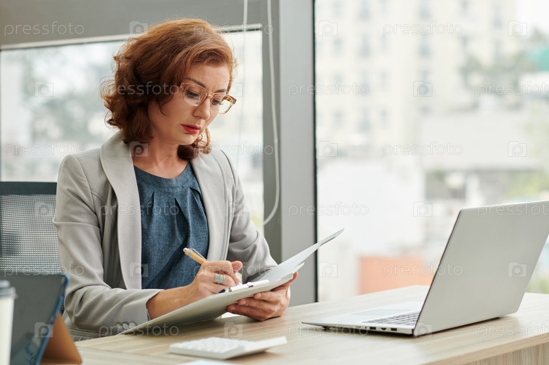 Деловая женщина проверяет документы
