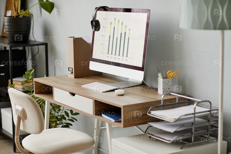 Рабочее место домашнего офиса в белом цвете с ПК-компьютером