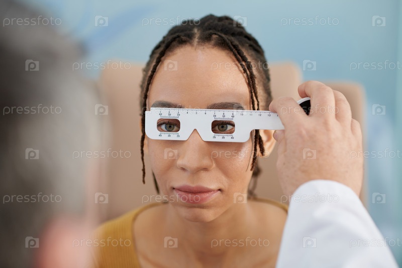 Офтальмолог, использующий инструмент линейки
