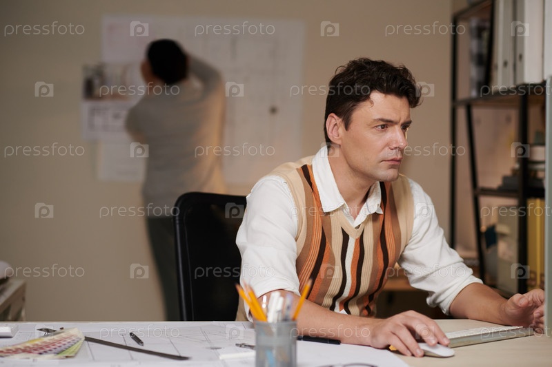 Концентрированный архитектор, работающий на компьютере
