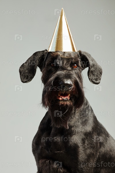 Милая черная собака празднует день рождения