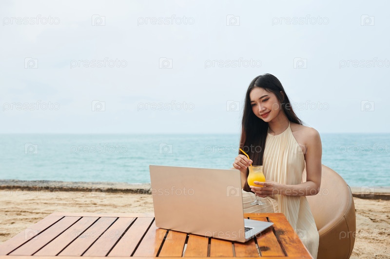 Молодая женщина, работающая на пляже
