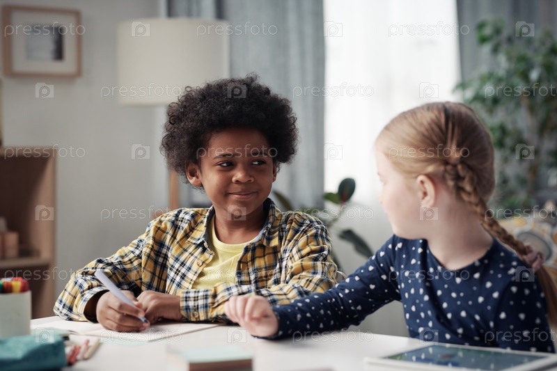 Дети рисуют вместе за столом