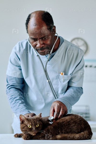 Врач осматривает кошку в ветеринарной клинике