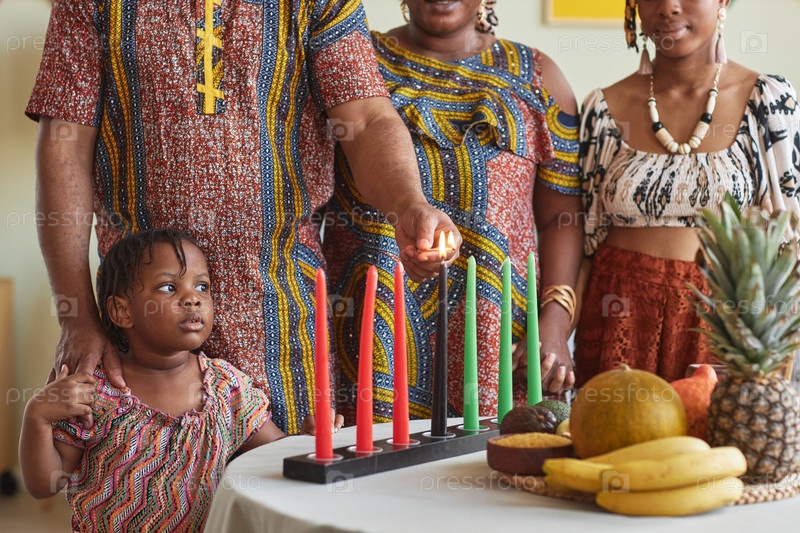 Африканская семья зажигает свечи на праздник