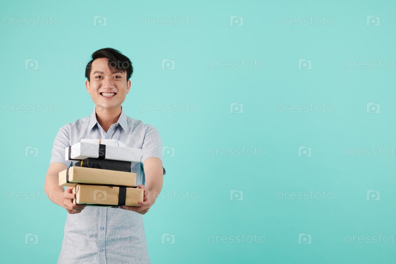 Мужчина, держащий подарки и подарок