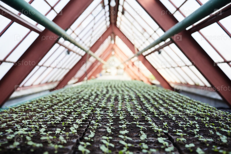 Выборочный акцент на первых рядах зеленых растущих саженцев