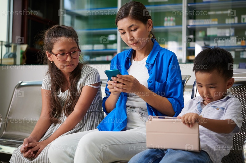 Семья в лобби больницы