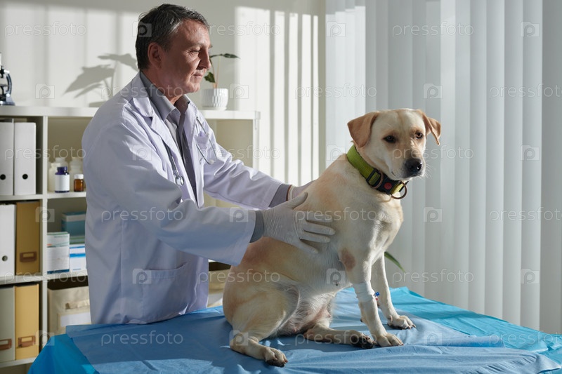 Ветеринар Палпирующая лабрадорская собака