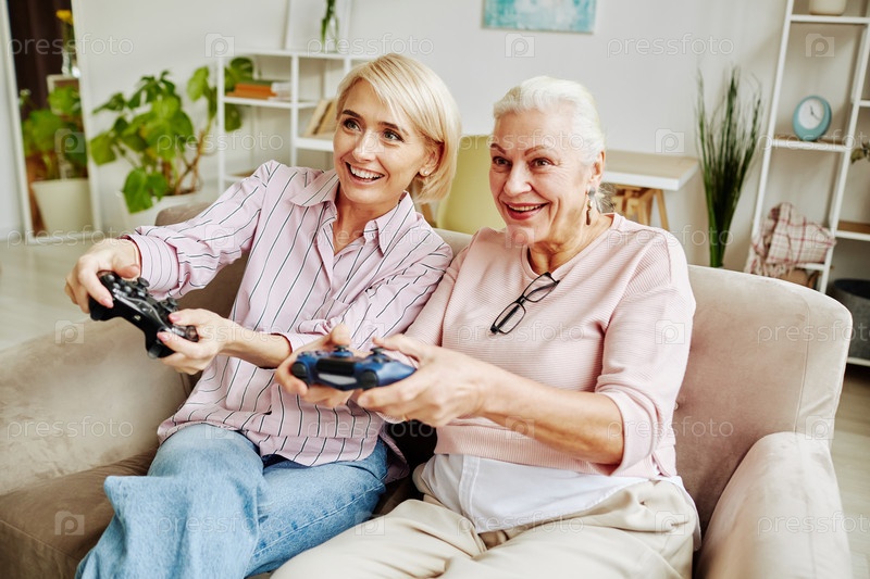 Дочь играет в видеоигры со старшей матерью