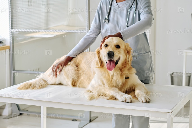 Ветеринар осматривает собаку в клинике