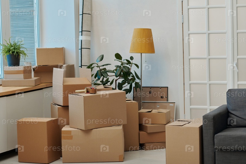 Современный номер с упакованными коробками
