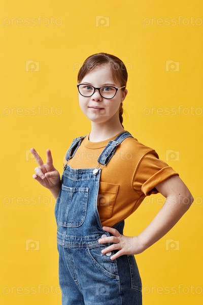 Девушка с синдромом Дауна на желтом Teen