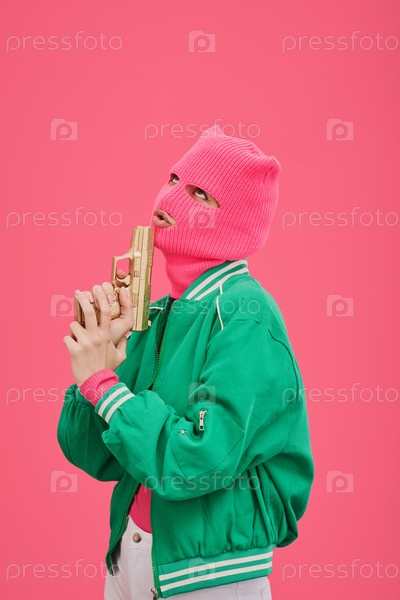 Молодая женщина в розовом балаклаве