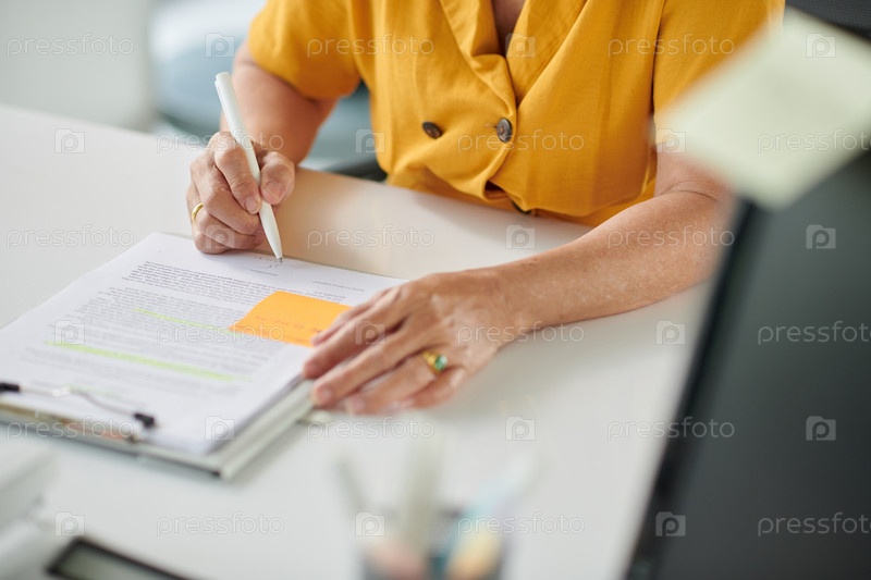 Старшая женщина, подписывающая документ