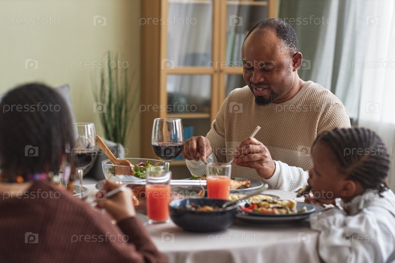 Африканский мужчина ужинает со своей семьей