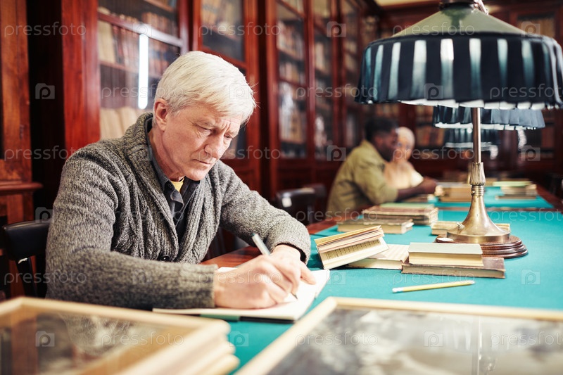 Зрелый мужчина в классической библиотеке